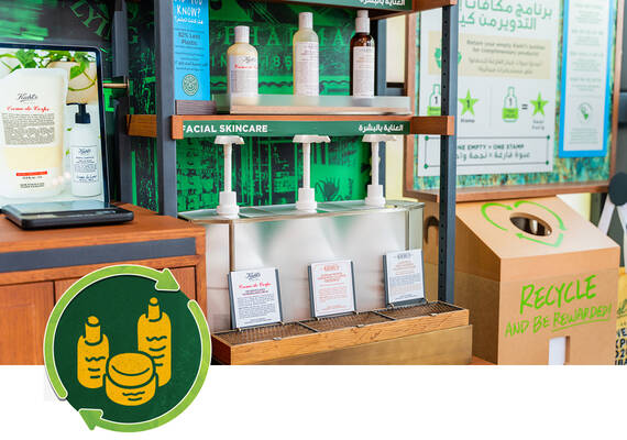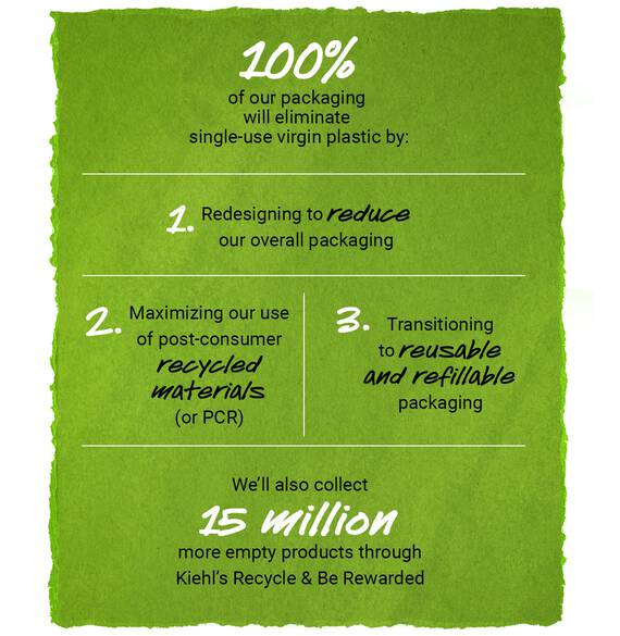 Kiehl’s first launched Recycle & Be Rewarded in 2009 and we have collected 14 million empty packages to date. Help us recycle another 15 million products by 2030 by bringing back your empties to your local Kiehl’s. You’ll even receive complimentary samples and rewards.