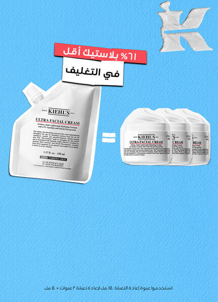 عبوتنا الجديدة القابلة لإعادة التعبئة تستهلك بلاستيكاً أقل بنسبة ٦١٪، وتكفي لتعبئة ٣ عبوات بحجم ٥٠ مل.