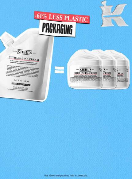 Our new refillable pouch uses 61% less plastic and will fill a total of three 50ml jars. Use 150ml refill pouch to refill 3 x 50ml jars.