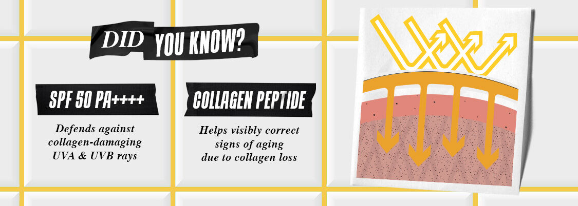 A lightweight sunscreen serum with Collagen Peptide that helps protect against sun damage and helps visibly correct early signs of aging.